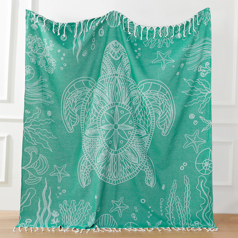 Tùy Chỉnh Nhà Sản Xuất Jacquard Bãi Biển Khăn Thổ Nhĩ Kỳ Phong Cách Polyester Bông Sọc Đại Dương Tua Thiết Kế Mùa Hè In Khăn Tắm