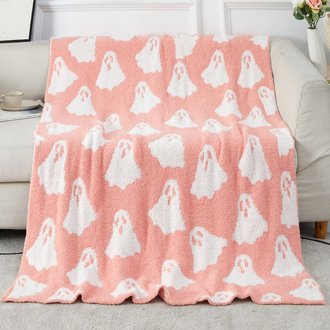 Tùy Chỉnh Nửa Hai Mặt Halloween Flannel Ném Dệt Kim Jacquard Ma Chăn Mặc Chăn Cho Halloween
